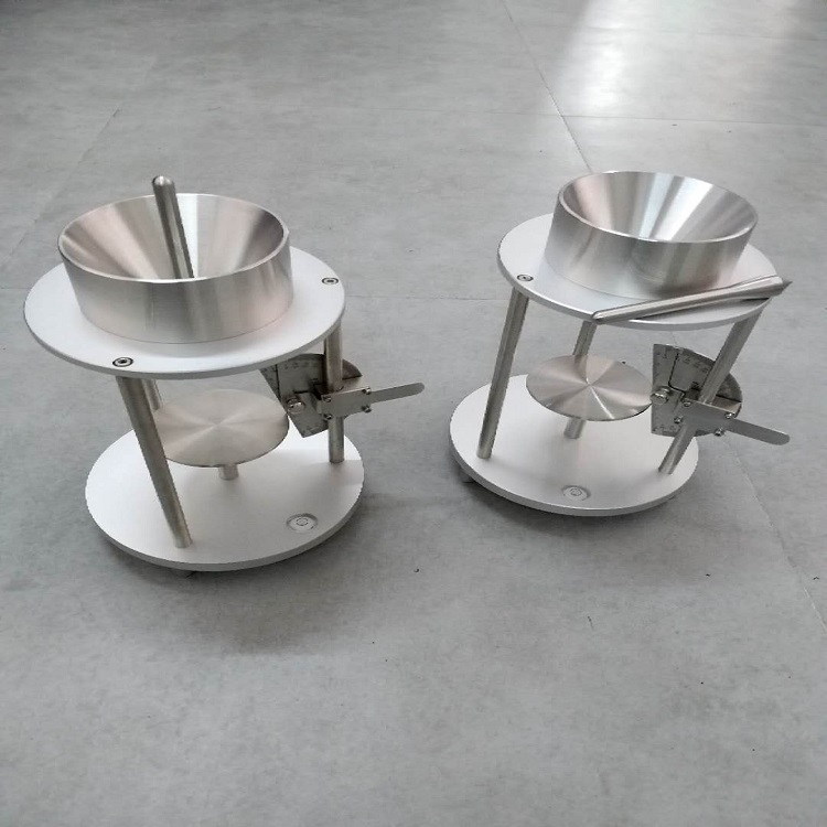 注入限定底面法安息角測試計是依據國家標準GB/T 16913.5-1997(本標準參照采用ISO 4324:1997粉狀和粒狀表面活性劑——粉體和顆粒——休止角的測定)的規定設計、本裝置適用的測定對象是粉塵,采用注入限定底面法測定粉塵安息角,與ISO 4324:1997的主要技術差異是不測量堆積在限定底面上的粉塵高度而采用量角器直接測定粉塵安息角。