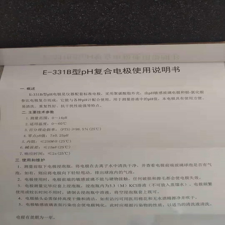 E-331B電極采用聚碳酸脂外殼、聚四氟環液絡設計,它能與各種pH計配合使用,用于測量溶液中的pH值,本電有使用方便、易清洗、重復性好、抗干擾性能強等特點。