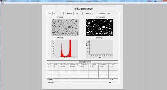 測試軟件 “炭黑分散度檢測系統(tǒng) ”,系統(tǒng)適用于windows 操作系統(tǒng);軟件帶自動分析功能,可以導出實驗報告