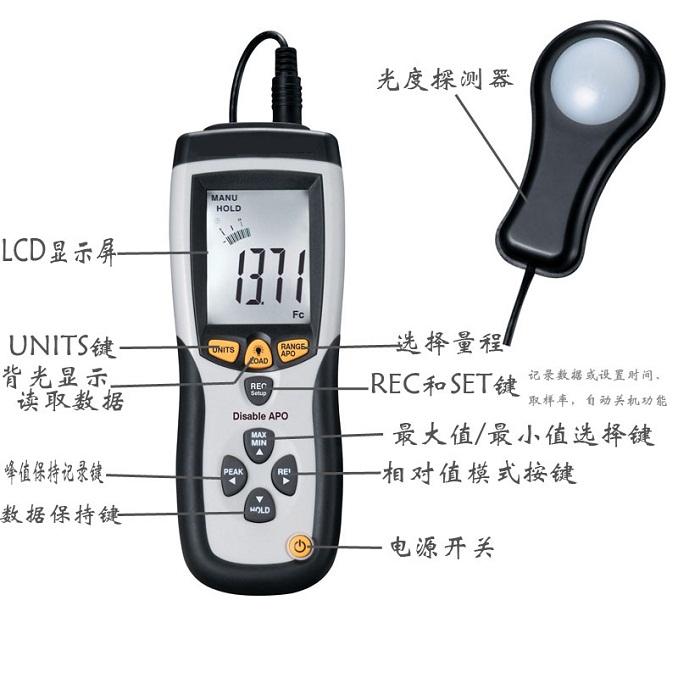 1. 光度量程:0.1Lux~0.1kLux/0.01FC~0.01kFC,可重復(fù)測量