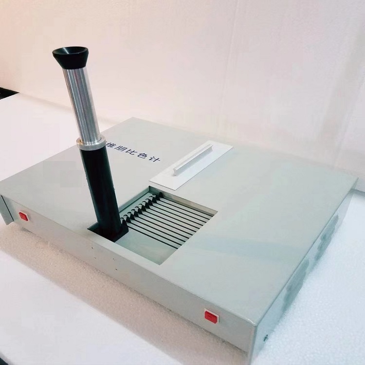 朋比色計上的標準色片的各種組合可以匹配幾乎所有樣品的顏色,而具有獨特的使用價值。該儀器廣泛應用于透明產品的測量,如測量食用油(各種油品)、脂類、樹脂、糖漿、化學品等有色液體樣品,也可測量固體、粉狀、糊狀反射羅維朋比色計樣品。國際上通行用其色度單位作食用油色澤的質量控制標準,我國在食用油強制性標準中使用。它是一種國際公認的權威性顏色測量儀器。羅維朋比色計(簡稱儀器,以下同)由觀測系統(包括目鏡筒、白板背景觀測室)樣品室、濾色片組和濾色片架、光源(充氣鎢絲燈)以及樣品池等一些附件所組成。